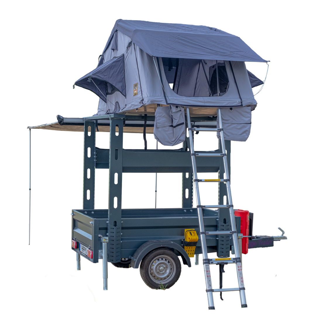 to carry your on-vehicle tent or all the equipment you will need in your different hobby area on its upper platform. Thanks to the rear ramp of the trailer, you can easily load your